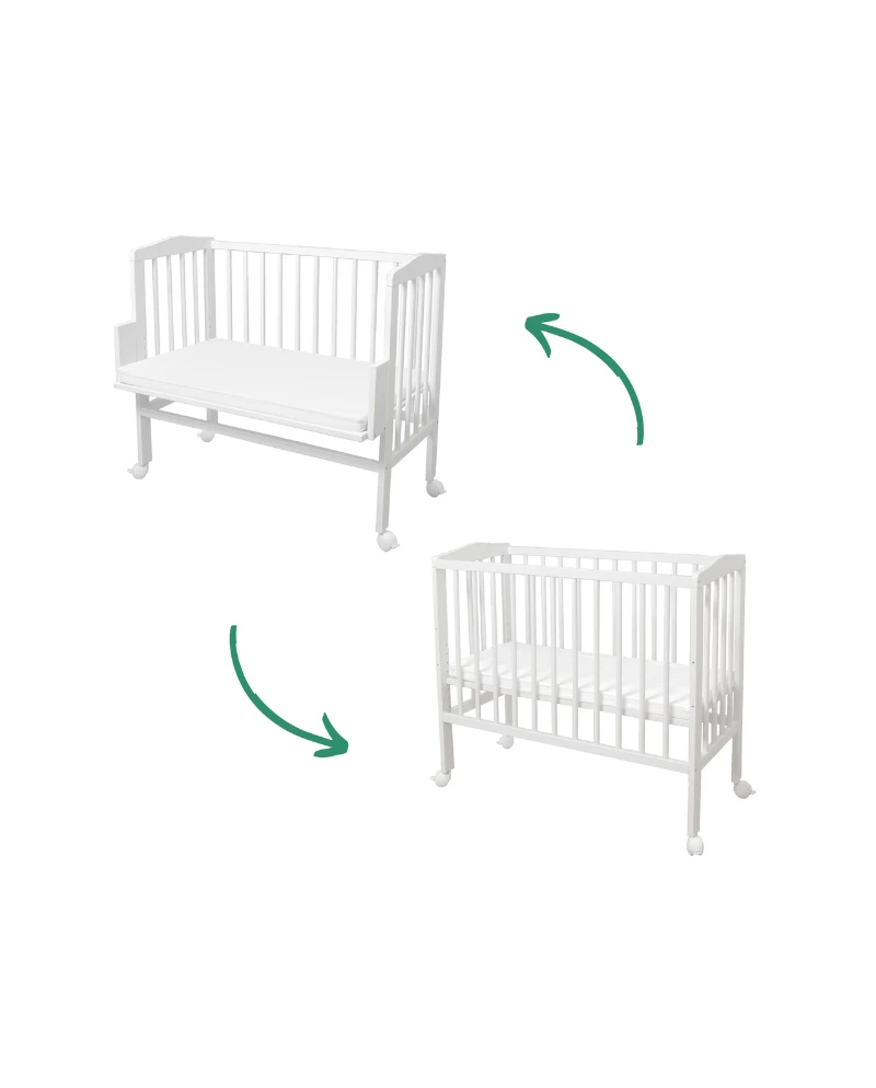 Vi strävar efter att våra möbler och tillbehör ska möta barnens behov samtidigt som de uppfyller föräldrarnas förväntningar. Det gäller även för denna produkt. Den 2-i-1 sidosängen med madrass är noggrant designad för att erbjuda optimal användarkomfort. Denna hjälpsamma babyprodukt gör det lättare att njuta av föräldraskapets alla glädjeämnen. Vi vill vara en del av din nya, fantastiska resa att visa världen för ditt barn. Bedside/sidosäng 2-i-1 sidosäng kombinerar högkvalitativ hantverksskicklighet med hållbarhet och kommer att tjäna både dig och ditt barn under lång tid framöver.