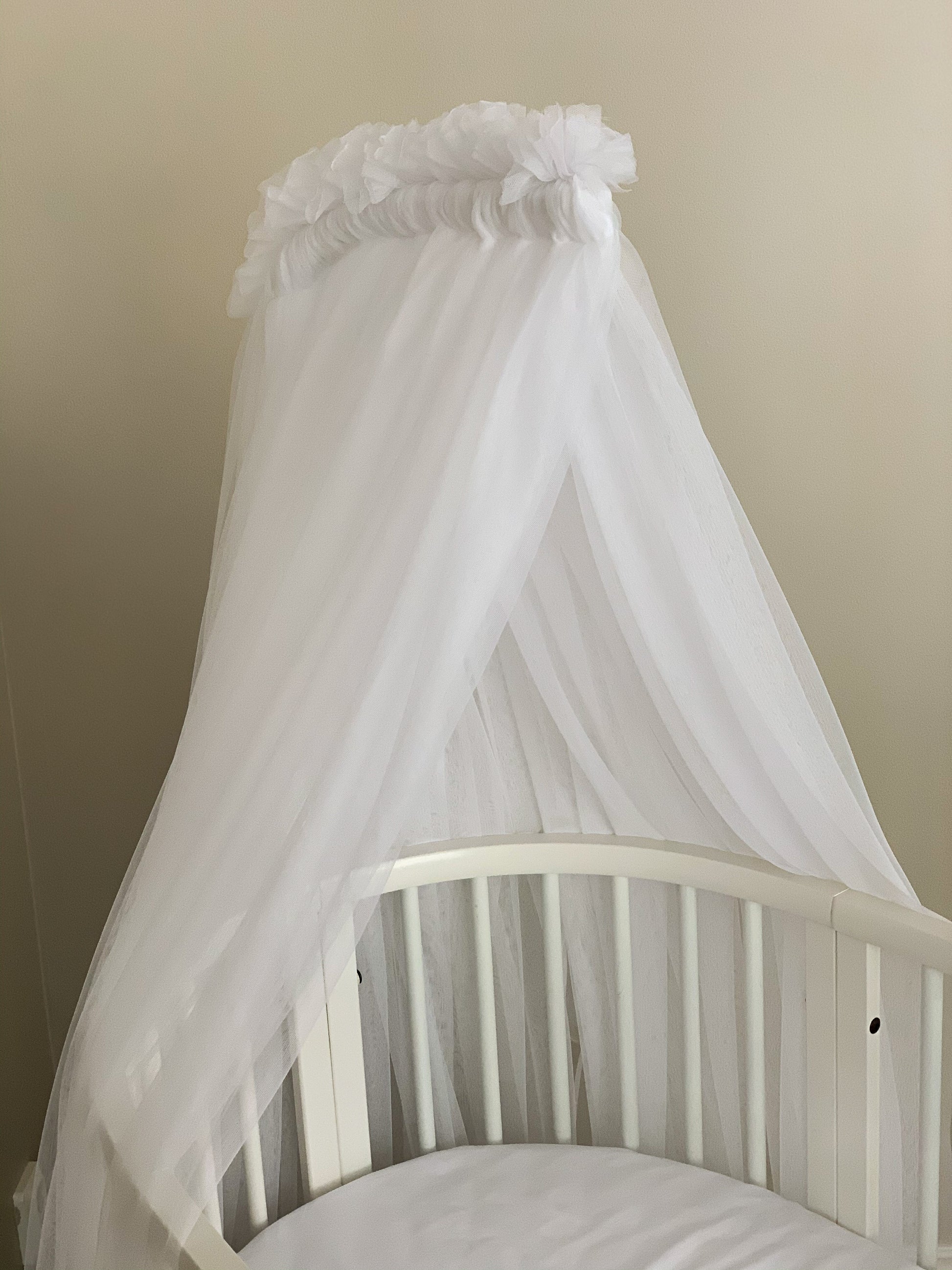 Specialsydd sänghimmel som ENDAST passar Stokkes egna stativ (ingår ej). Denna passar alltstå INGEN annan säng förutom Stokkes egna. Däremot passar "vårt" stativ från NG BABY Stokkes runda/ovala sängar.