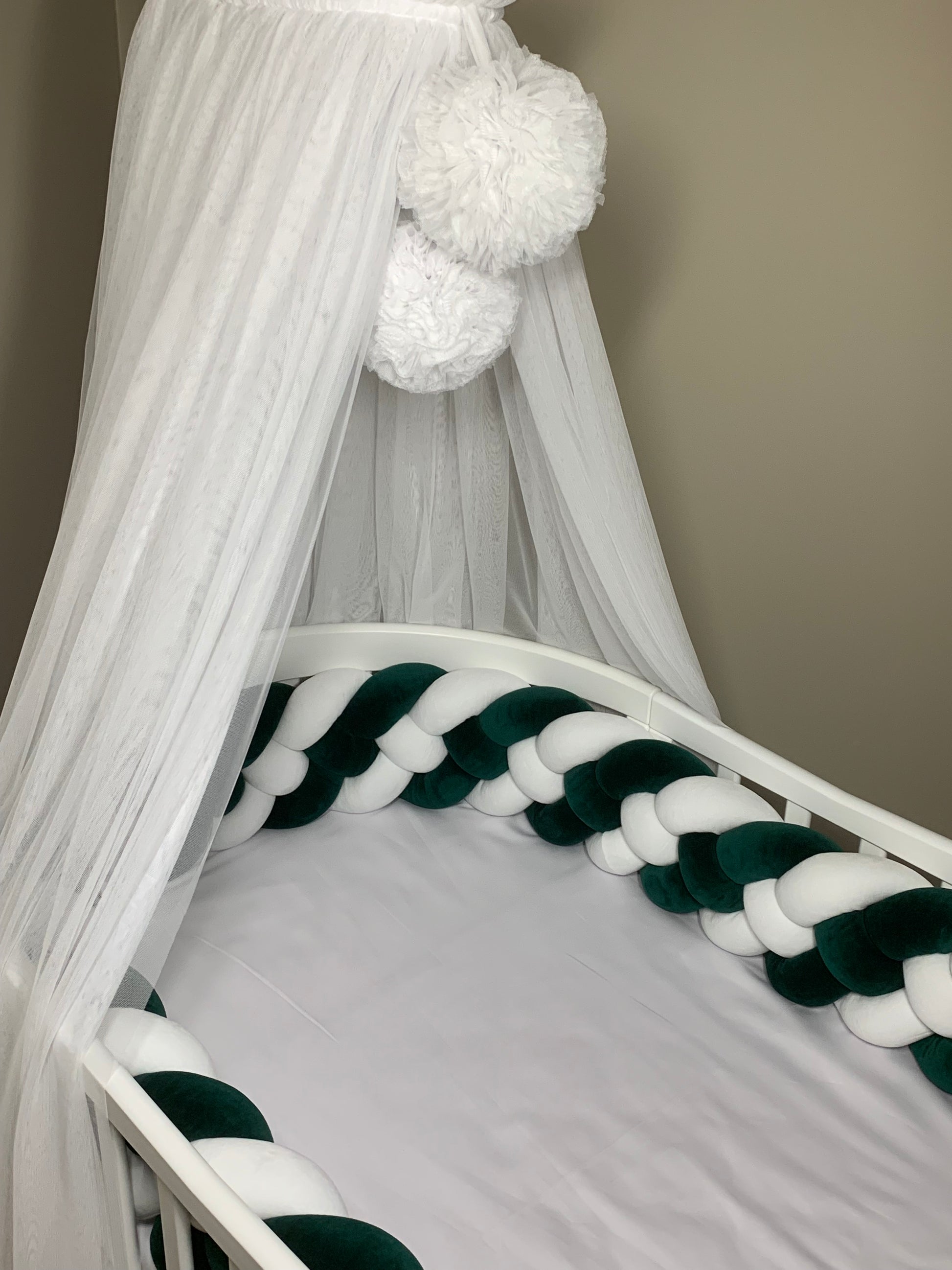 Skapa en trygg och mysig sovplats med vår handgjorda sovfläta – ett vackert och funktionellt spjälskydd som skyddar ditt barn från hårda spjälsängskanter.