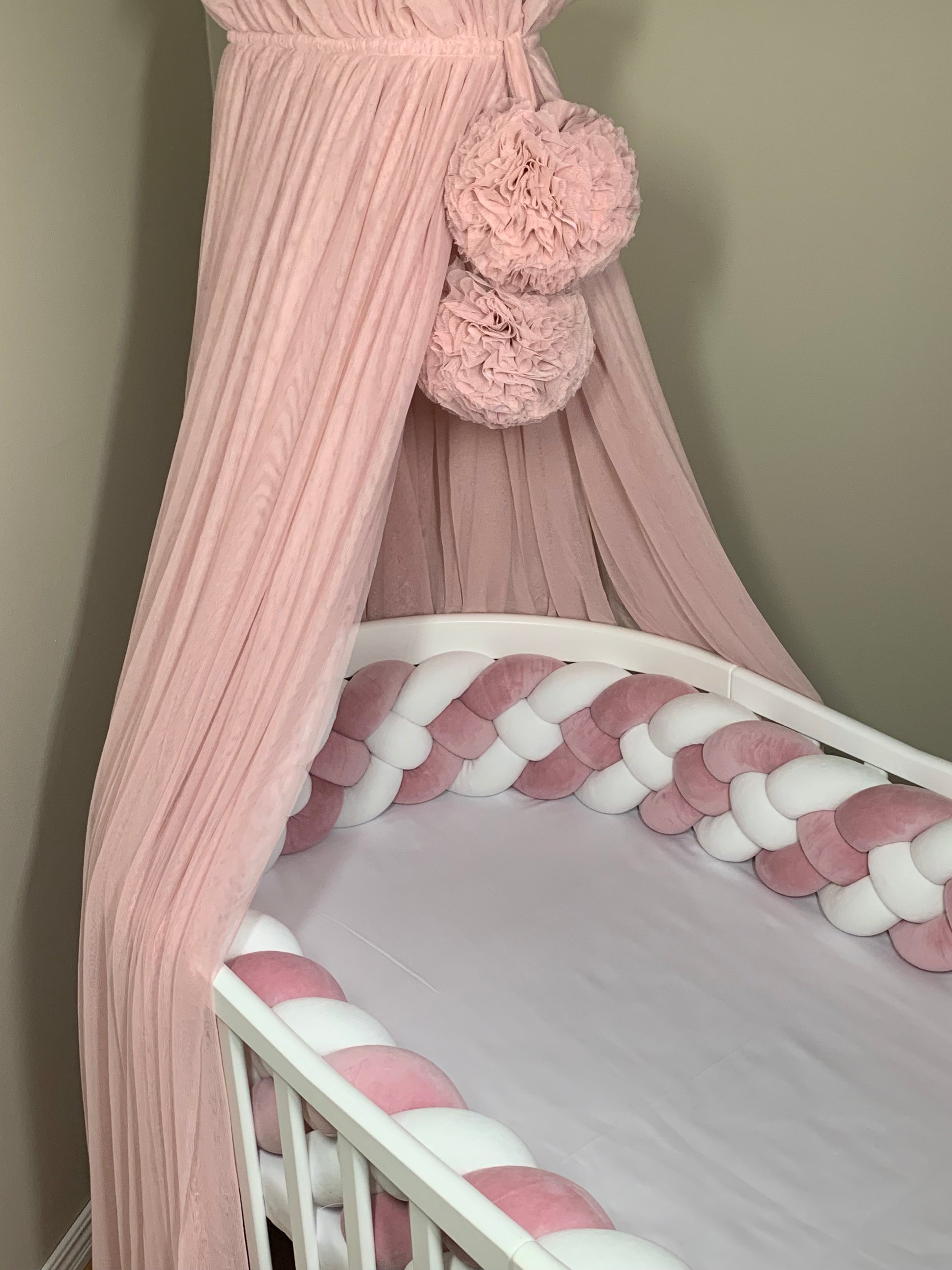Skapa en trygg och mysig sovplats med vår handgjorda sovfläta – ett vackert och funktionellt spjälskydd som skyddar ditt barn från hårda spjälsängskanter.