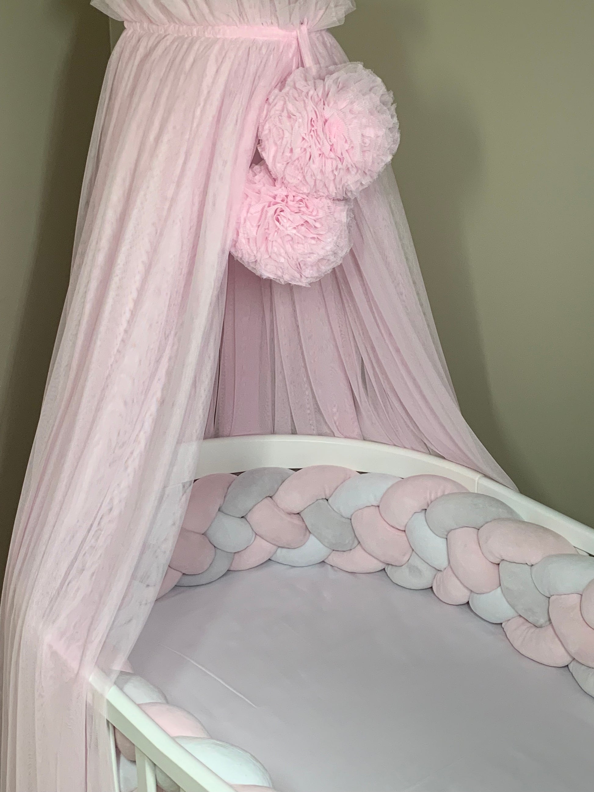SOVFLÄTA/SPJÄLSKYDD FYRFLÄTAD 360CM LJUSROSA, LJUSGRÅ & VIT